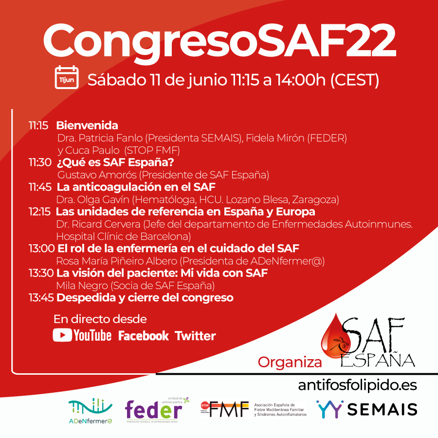 No os perdáis el próximo 11 de junio el #CongresoSAF22, en formato virtual y retransmitido por nuestras redes sociales